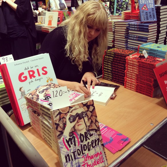 Min första programpunkt var att träffa Johanna Thydell och köpa hennes nya bok Mornitologen. Det var många, många år sedan vi sågs senast, säkert minst 10 år sedan? Jag fick i alla fall en stor kram och en signerad bok, för konstigt nog har jag ingen signerad bok av henne tidigare. Jag ser väldigt mycket fram emot att läsa hennes bok – hon är en stor favorit!
