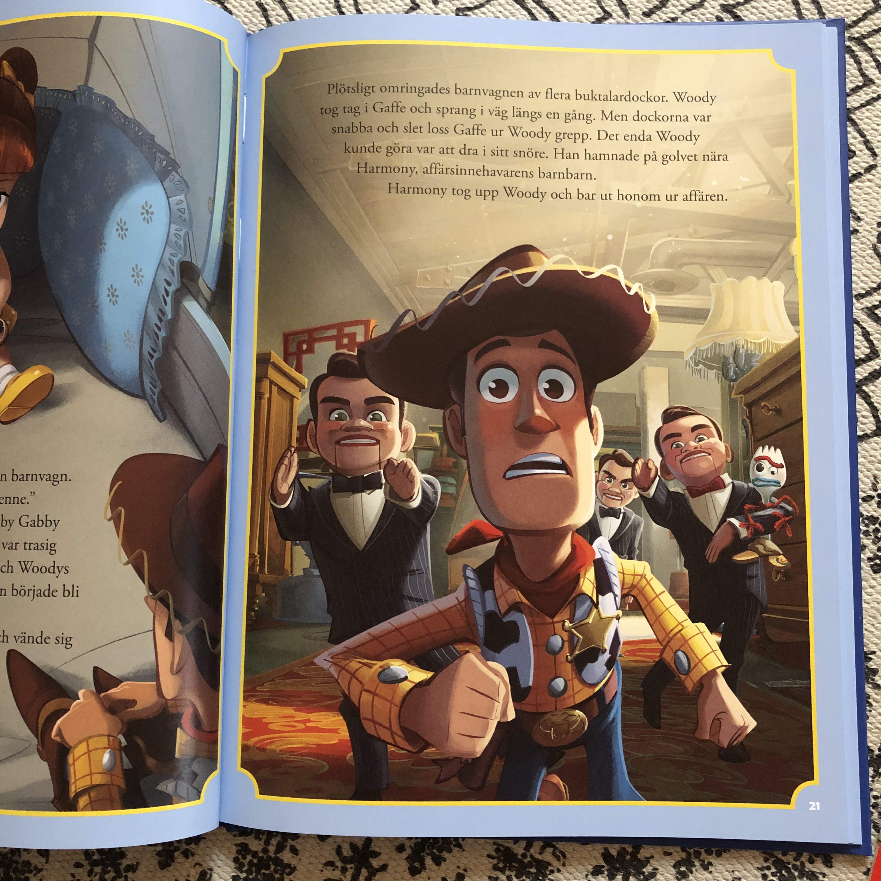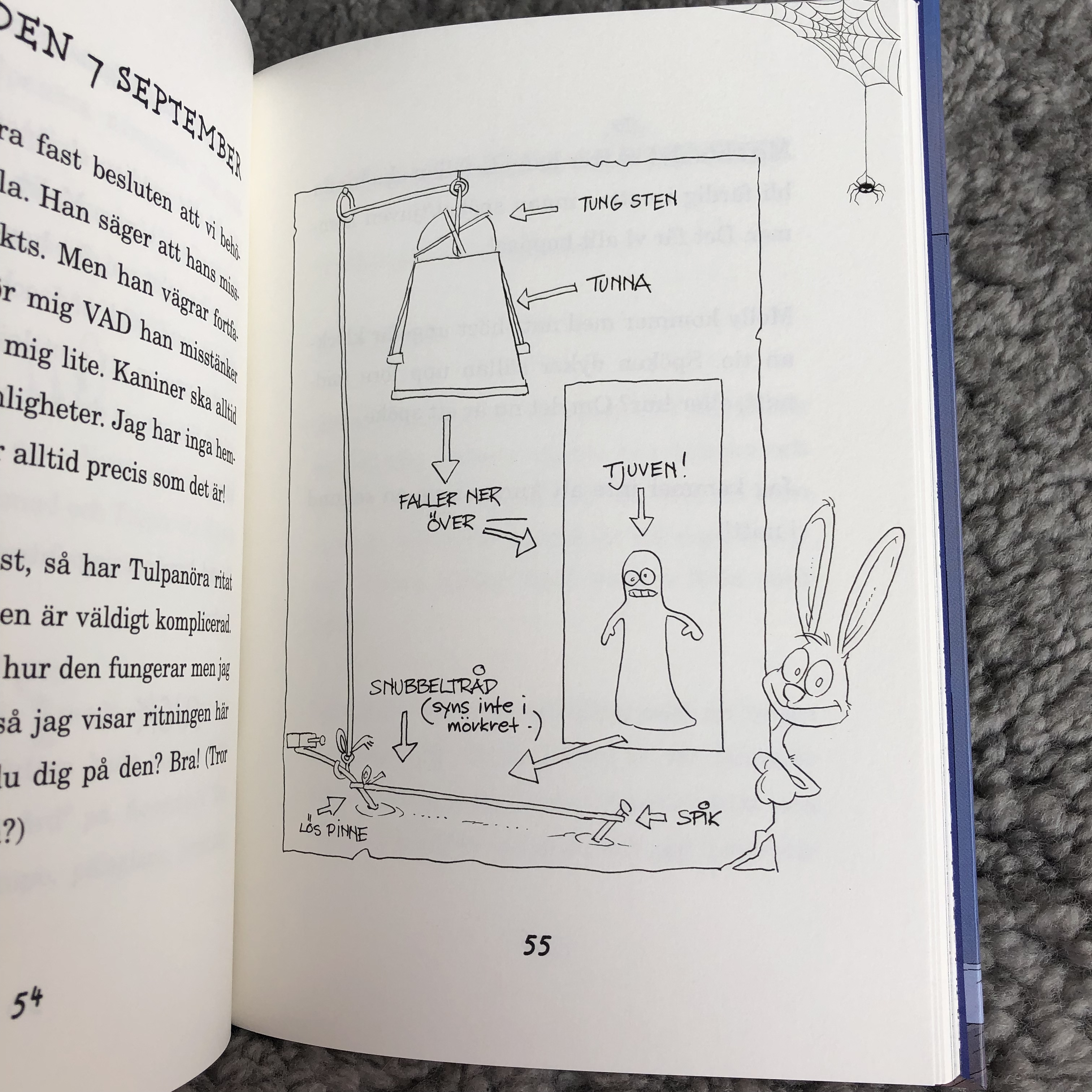 Ibland tyckte hon att boken var läskig, särskilt när de blev jagade av konsthandlaren. Då blev det lite pirrigt läskigt, tyckte hon. Men hon gillar när böcker är lite småläskiga, bara hon känner att det läskiga är tillfälligt och att det kommer att lösa sig.