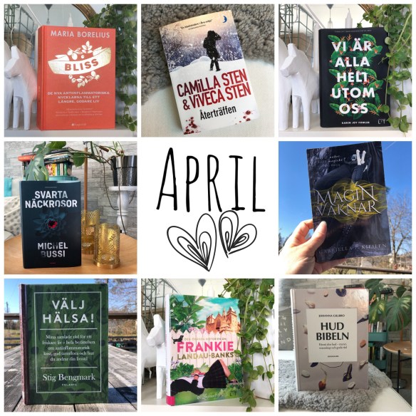 Bättre sent än aldrig, heter det ju. 😅 Här kommer sammanställningen av april månads läsning. Tre av böckerna har jag fortfarande inte ens recenserat och det säger en del om den här månaden. April var en väldigt upptagen månad.