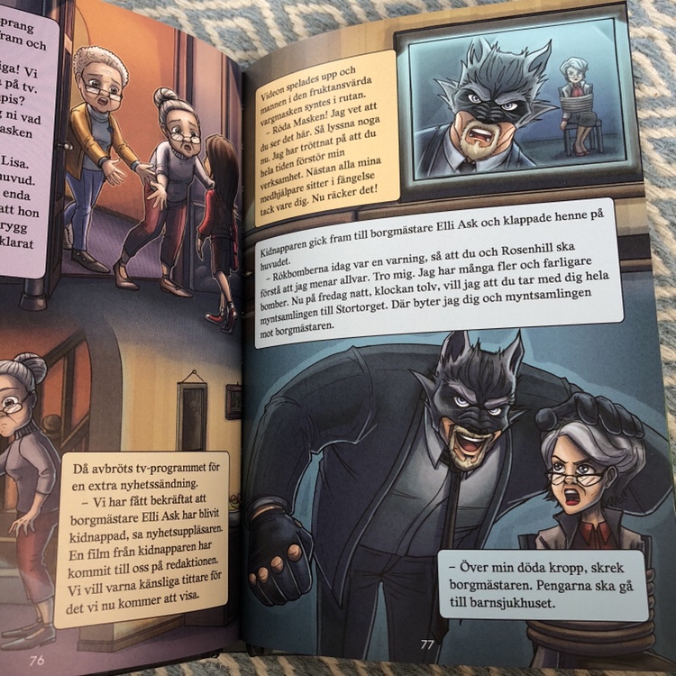 Böckerna är perfekt för den lite ovana läsaren eftersom de är uppbyggda som ett seriealbum och med fantastiska illustrationer. Handlingen är både spännande och tänkvärd om bl.a. ensamhet och utanförskap. Sonen vill gärna visa vad som händer när han läser. Han håller upp boken och berättar energiskt om vad som precis händer i boken. Jag älskar att få ta del av hans entusiasm. ❤️